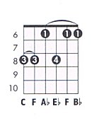 | Notes in F m11 | F - G# (Ab) - C - D# (Eb) - G - A# (Bb) |
