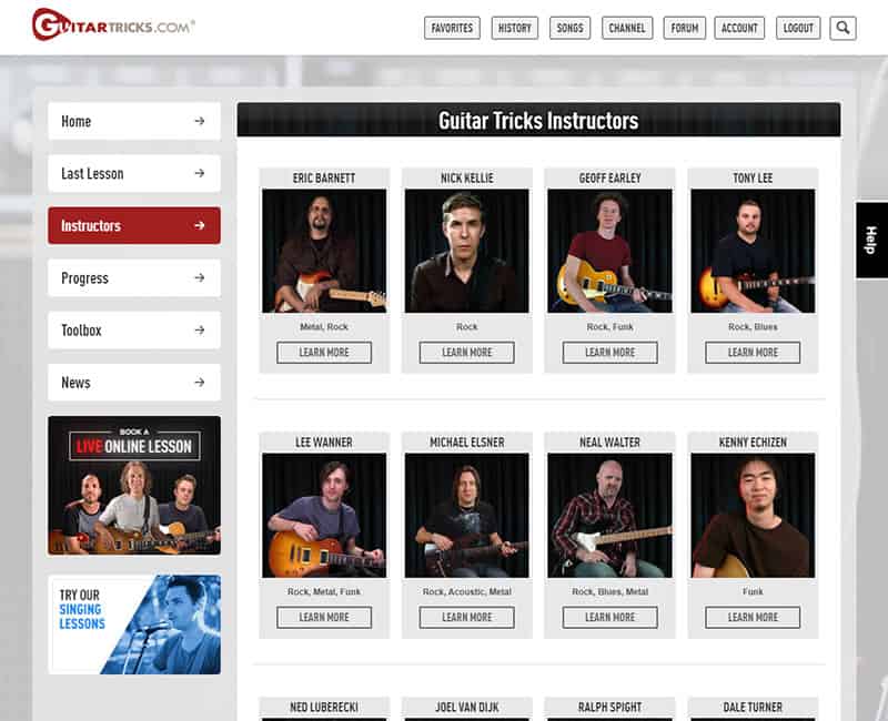 I joined GuitarTricks.com almost a year, and little bit disappointed because with so many instructors there are only two persons teach with chapters/syllabus, and other instructors only giving tutorials without chapters/syllabus, and unfortunately we can’t choose other instructors to teach the lessons with syllabus.