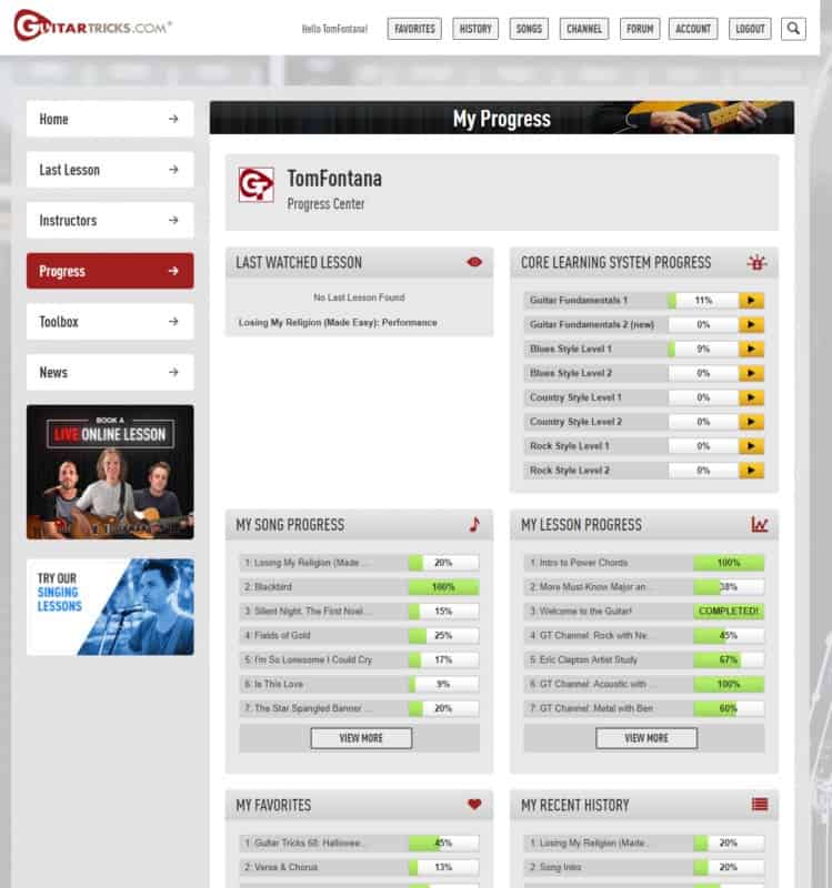 The backbone of GuitarTricks' offering is their "Core Learning System".